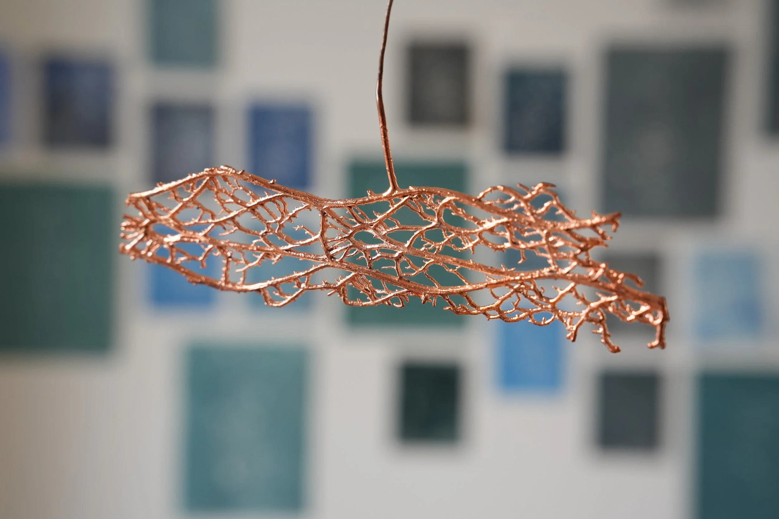 Des sculptures, des mobiles, des bijoux, chaque pièce créée est singulière, réalisée dans son entier dans l’atelier de cette artiste amoureuse de la nature, des couleurs et du feu.